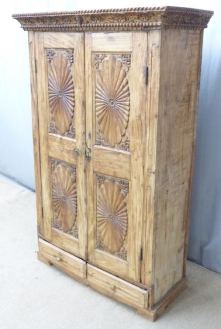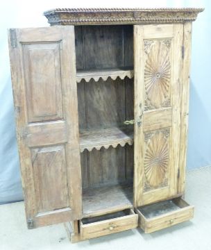 A carved Eastern hardwood cupboard, by repute originally purchased from Liberty, London, W103 x D48 x H163cm