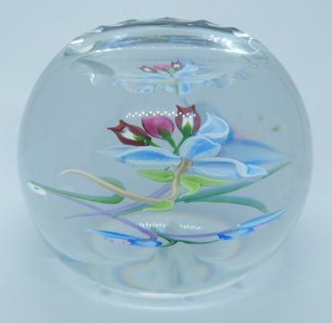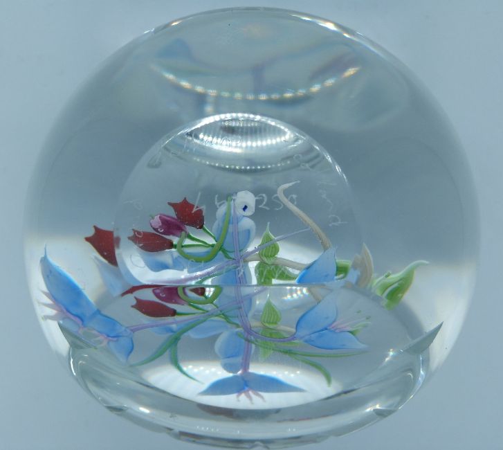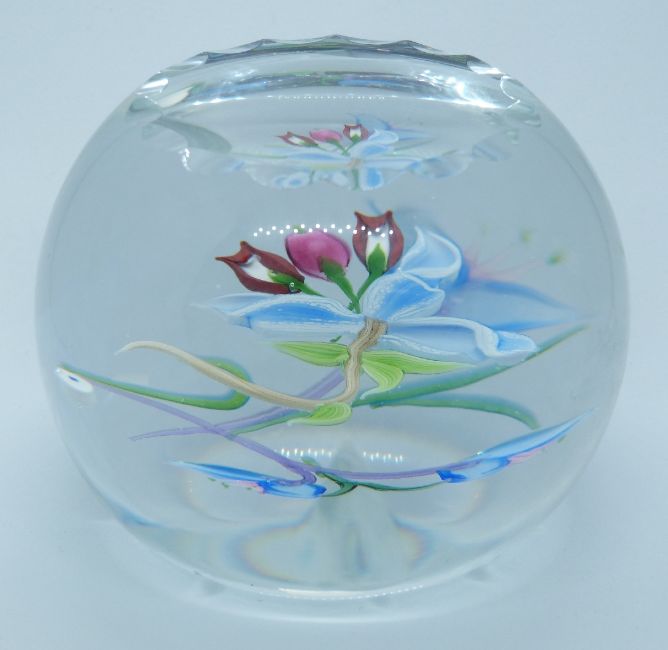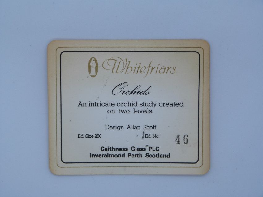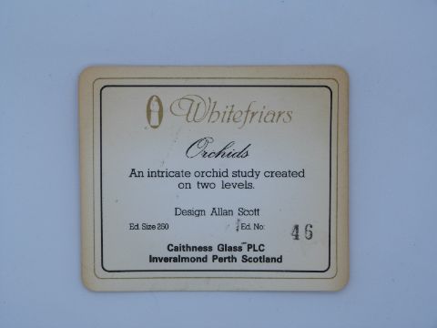 Caithness Whitefriars lampwork glass paperweight Orchids designed by Alan Scott, limited edition 46/250, with certificate, 80mm in diameter