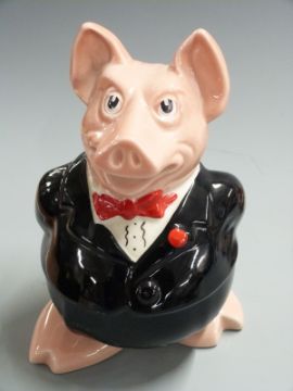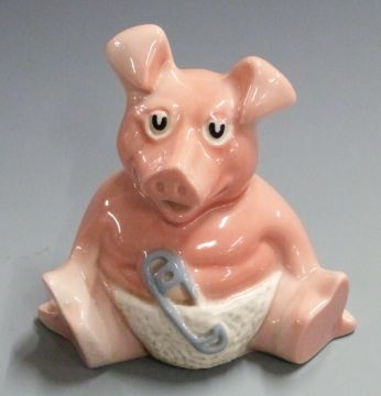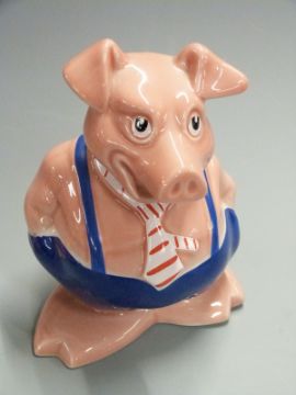 Set of five Wade NatWest pigs and a studio pottery vase, signed TL '98 and with fish cipher