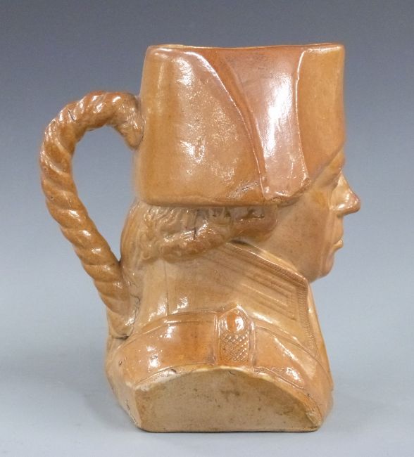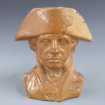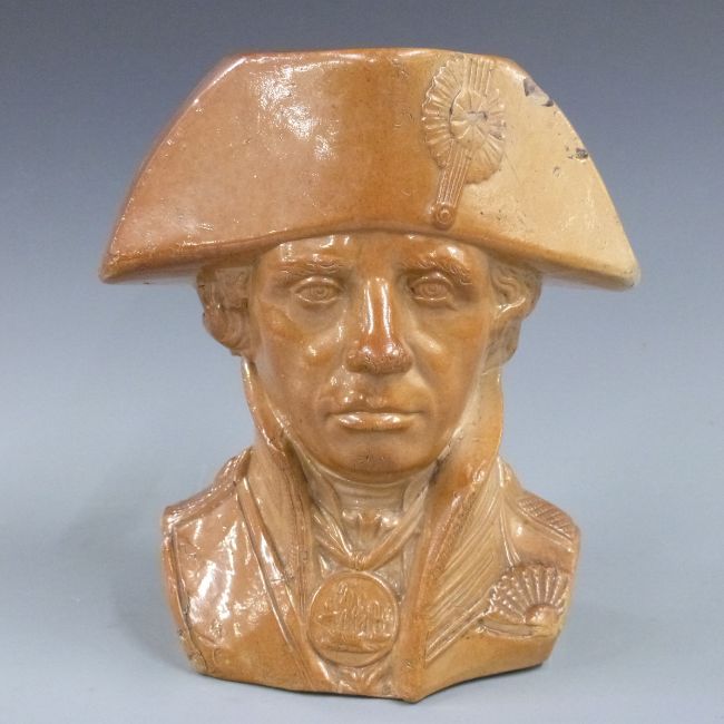 19thC Doulton & Watts Lambeth Pottery, London salt glazed character jug of Admiral Lord Nelson, impressed marks to base, H19cm
