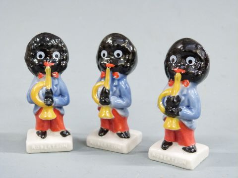A collection of boxed Wade Robertson porcelain Golly figures including several trumpeters with a large quantity of Robertsons Gollicrush bottle openers