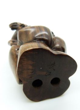 Japanese erotic netsuke and another netsuke depicting a water buffalo, both signed
