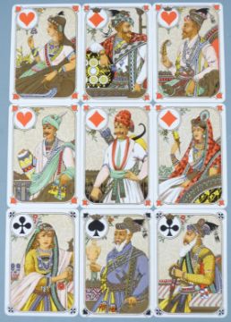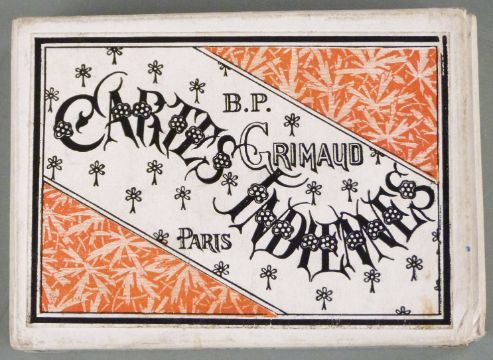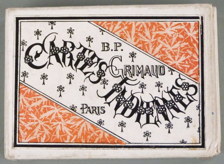 B.P. Grimaud, Paris pack of Cartes Indiennes playing cards, conceived for Orient Express passengers. Courts show Indian figures with floral backs, in original slip case and paper wrapper