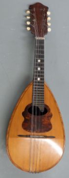 Late 19th/early 20thC flat back mandolin in brown block leather carry case