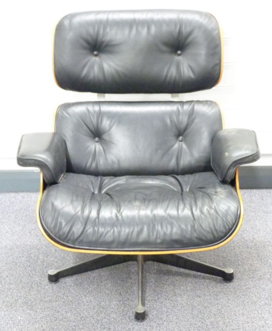 Charles and Ray Eames for Herman Miller model 670 leather upholstered and rosewood veneered lounge chair raised on an aluminium base, with two labels to base one a Vitra label with reference number, the other 'Charles Eames Vitra original Eames lounge chair'