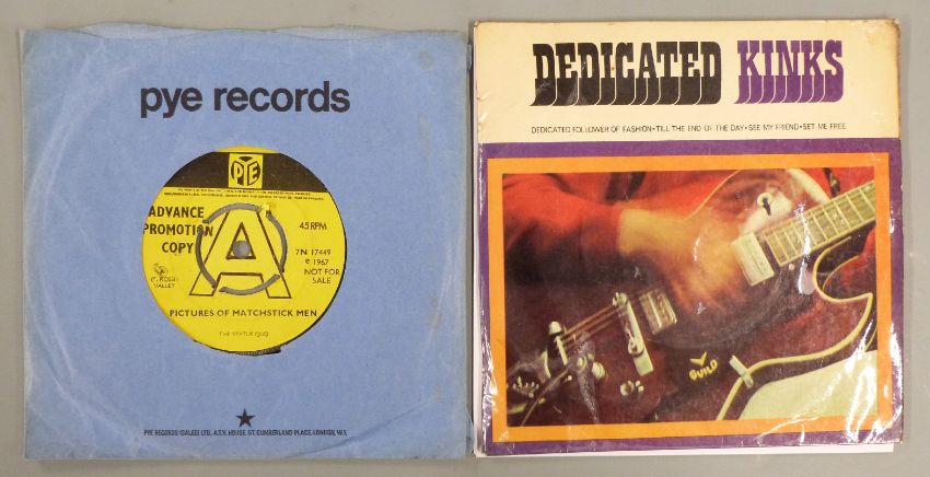 The Kinks - Dedicated Kinks (NEP 24258), record appears VG with slight wear to cover and Status Quo - Pictures of Matchstick Men (7N 17449) advance promo copy
