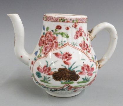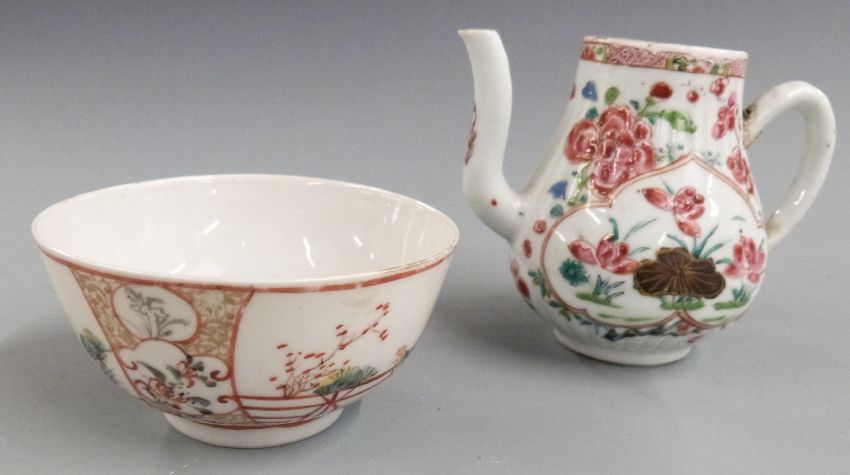 A 19thC Chinese famille rose wine jug (8.5cm tall) and tea bowl