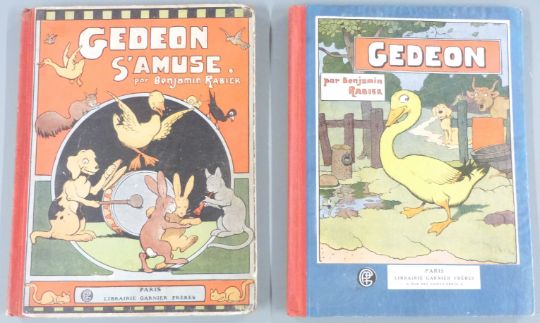 [Illustrated] Gedeon; Gedeon S'Amuse; Gideon en Afrique, Gedeon; Gedeon Dans La Foret and Placide et Gedeon by Benjamin Rabier illustrated in colour throughout and published Paris Librairie Garniere Freres 1926-1928 comprising 5 titles in the Gedeon collection bound in original colour iluustrated boards, together with The Brownie's Picnic from the Hurrah Series (5)