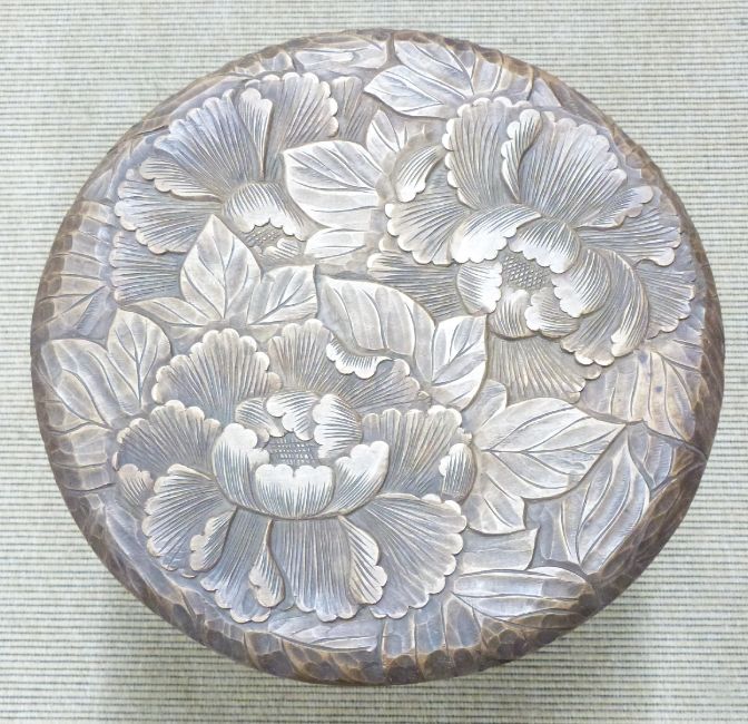 Small carved table, possibly Liberty, diameter 40 x H47cm