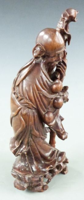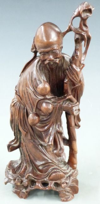 20thC Chinese wooden figure of a wise man, 29cm tall