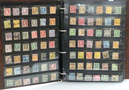 A stockbook of USA stamps, all periods, and The United States Postal Service mint sets of commemorative stamps 1975-1981 in special folders (7)