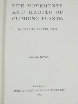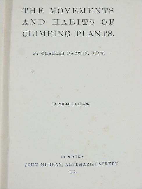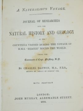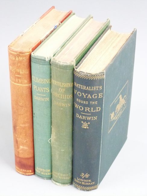Charles Darwin A Naturalists Voyage: Journal of Researches into the Natural History & Geology of the Countries Visited During the Voyage of H,M.S. Beagle with a Portrait, John Murray 1889 in original gilt cloth with The Movements and Habit of Climbing Plants 1905, The Fertilisation of Orchids, illustrated 1904, The Different Forms of Flowers or Plants of The Same Name illustrated 1896  (4)