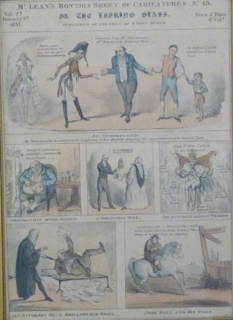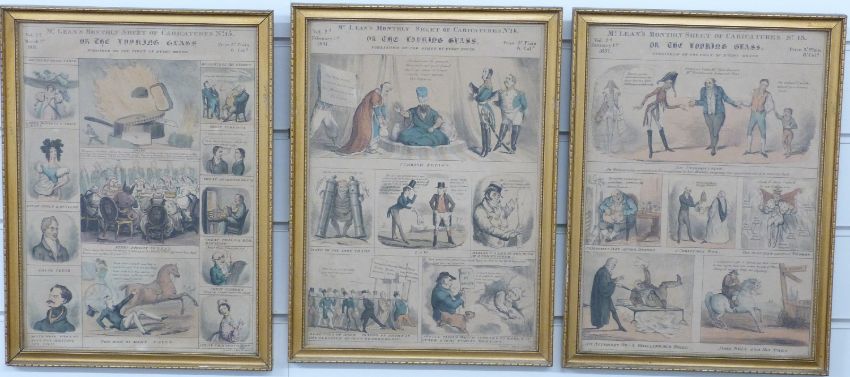 Three McClean's Victorian monthly caricature sheets, all dated 1831 and 35 x 25cm
