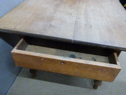 A mahogany farmhouse plank top dining table with two drawers raised on turned ash legs, W230 x D107 x H80cm