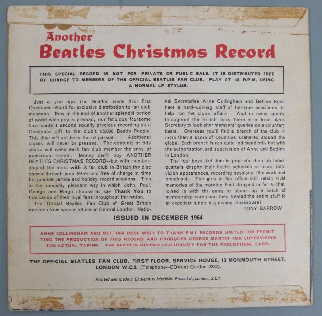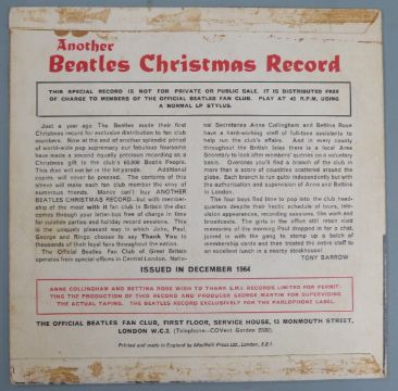 The Beatles - Fan Club Flexidiscs; The Beatles Christmas Record (Lyn 492), flexi only, no cover; Another Beatles Record (Lyn 757) no insert and The Beatles Third Christmas Record (Lyn 948) flexi only, no cover