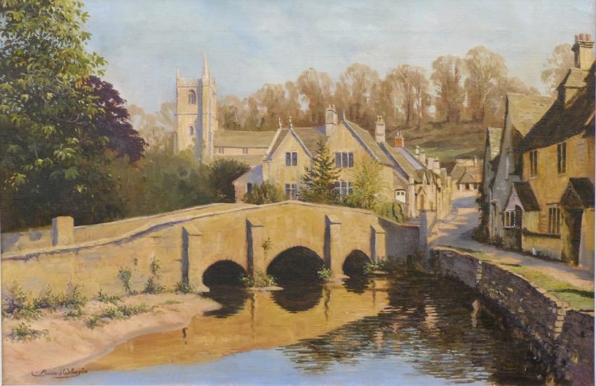 Bernard Willington oil on canvas Castle Combe Cotswold village scene, signed lower left, 39 x 60cm