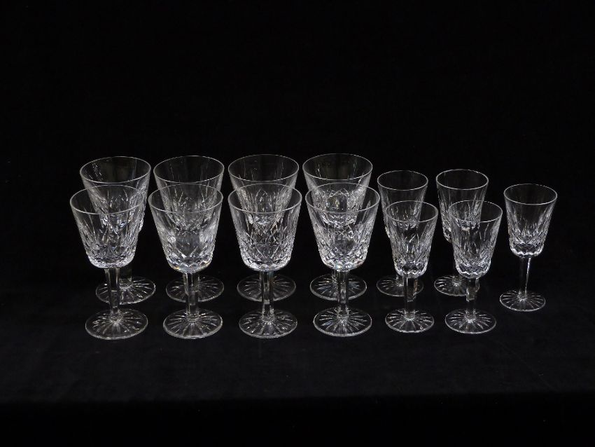 Thirteen Waterford Lismore wine glasses, eight large 14.8cm tall and five small 13cm tall