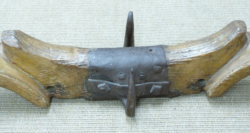French wooden yoke with forged metal fitting, W125cm