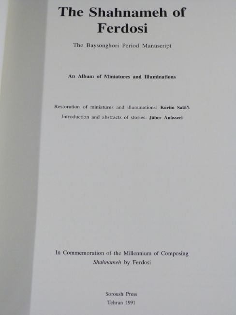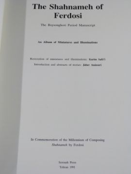 Persian book in Farsi and The Shahnameh of Ferdosi, The Baysonghori Period Manuscript