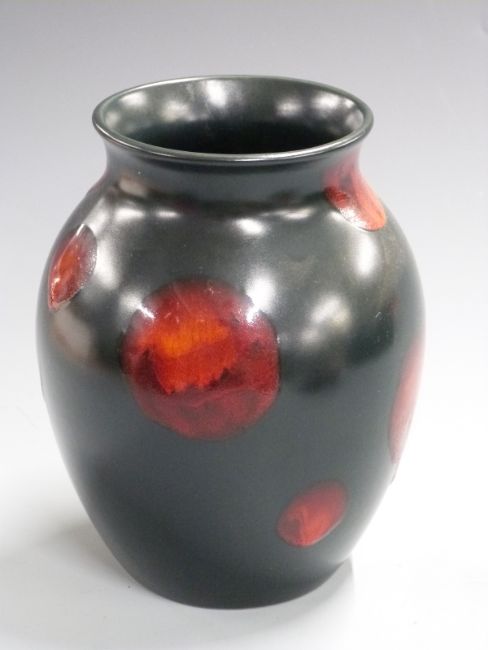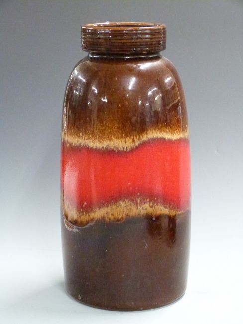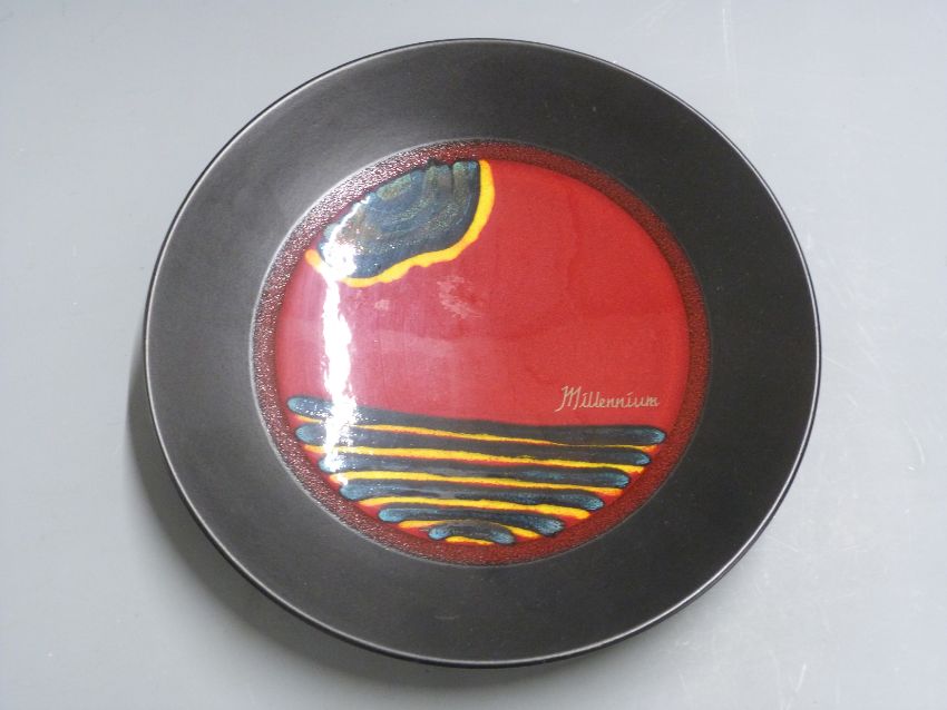 Poole pottery 'Millennium' charger, Poole vase and a mid century/retro German vase, tallest 38cm