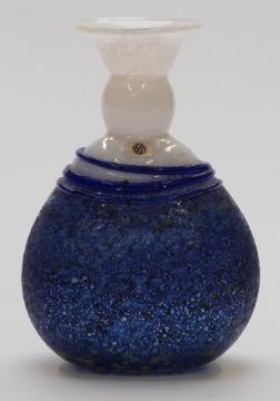 Milan Vobruba for Gusum Sweden glass vase signed 'M V ' and dated 83 with applied trailing decoration and original label, 18.5cm tall