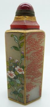 Chinese snuff bottle with painted floral decoration and hardstone stopper, 7.9cm high