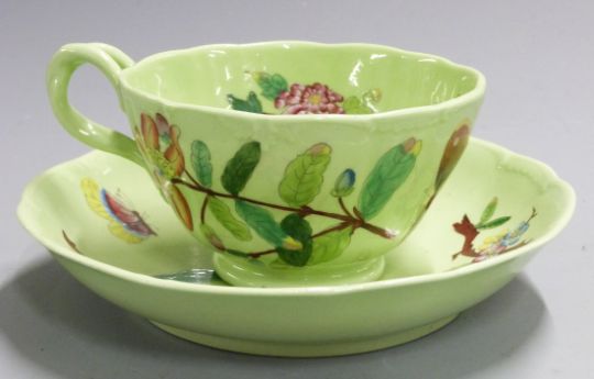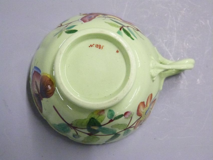 19thC/20thC cabinet cup and saucer, hand decorated with butterflies and flora in enamels, H6.5cm