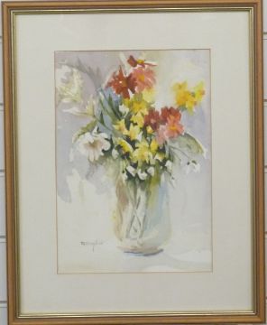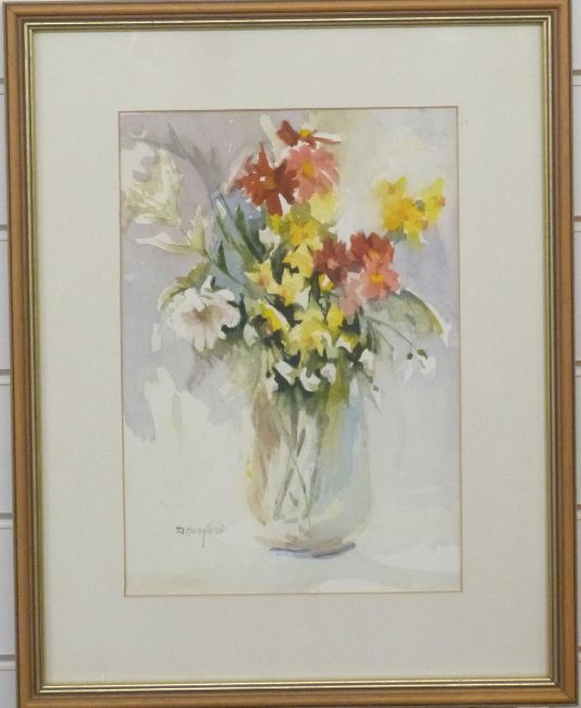 D. Bessford watercolour 'Spring Flowers', 33 x 23cm, framed and glazed with label verso