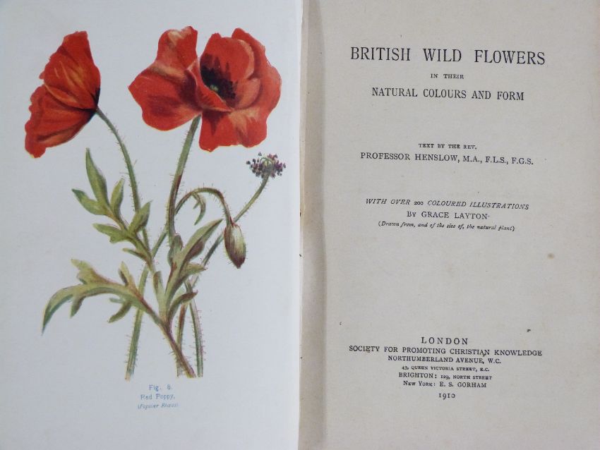 Wild Flowers Month by Month in Their Natural Haunts by Edward Step, 2 volumes 1905 fully illustrated and with mounted colour frontispieces in gilt decorated half leather, British Wild Flowers in their Natural Colour & Form by Professor Henslow with over 200 coloured illustrations 1910, Flowers of The Field by Rev. Johns 1916 illustrated, Flora Simlensis with over 200 illustrations & map 1902, Colour Schemes for the Garden 1914 and The Old Country 1917 (7)
