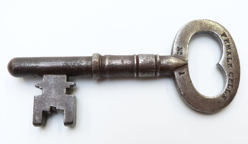 Victorian key 'Female Cells No1' from Penryn Police Station, Cornwall, length 10.5cm. The vendor worked there and was present when it closed in 1992