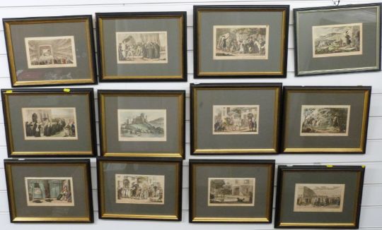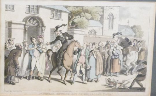 Set of twelve 19thC Rowlandson Dr Syntax etchings, 14 x 23cm