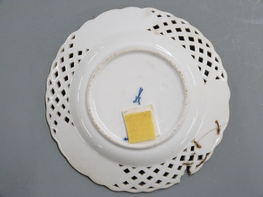 Set of six Meissen pierced cabinet plates, diameter 15cm