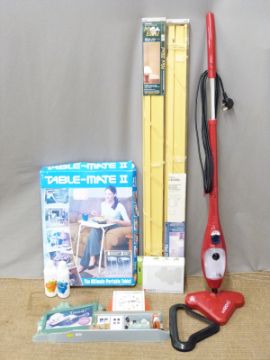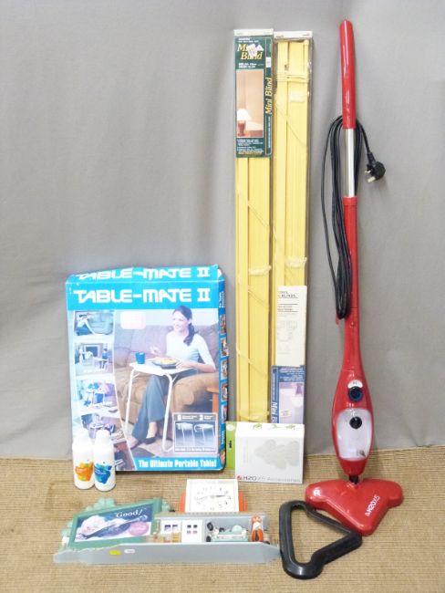 A quantity of household items including a Coca-Cola clock