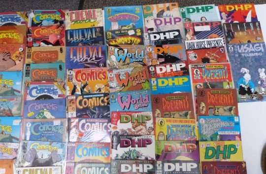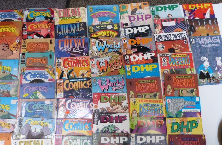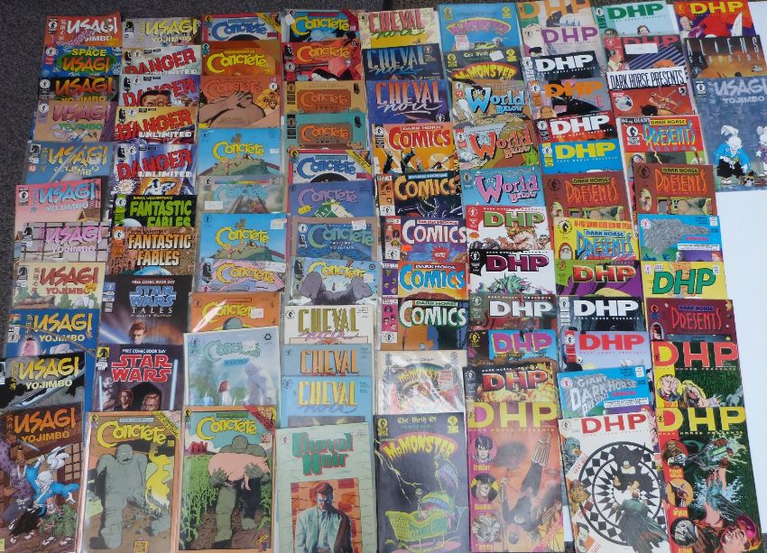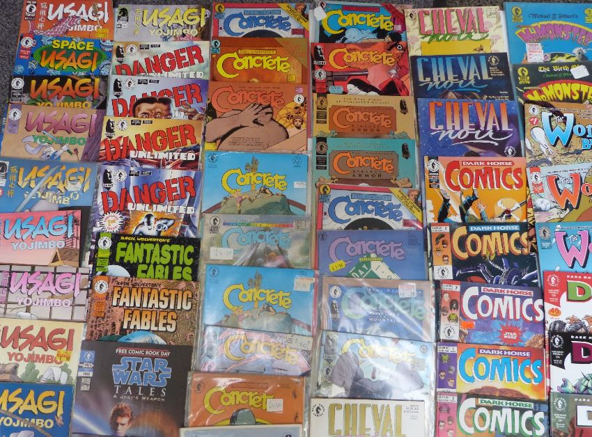 Ninty-one Dark Horse Comics comprising 1-3, 7 and 25, Star Wars, Cheval Noir, Paul Chadwick's Concrete, Fantastic Fables, Danger Unlimited, Usagi Yo Jimbo, Aliens Genocide, DarkHorse Presents, The World Below and MrMonster.