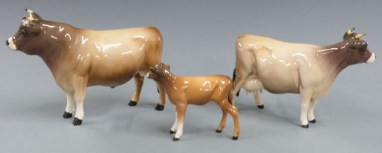 Beswick Jersey bull, cow and calf
