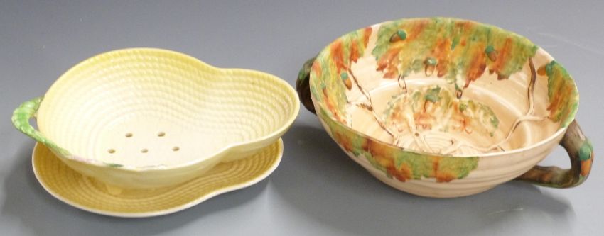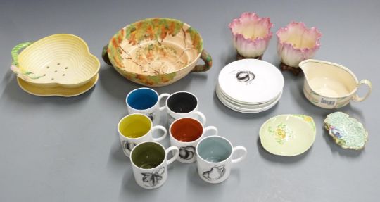 A collection of ceramics including Carltonware, Susie Cooper, Royal Worcester, pair of majolica flower vases etc, tallest 9cm