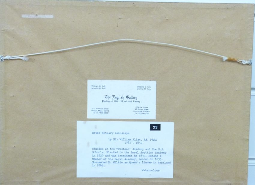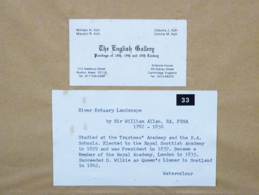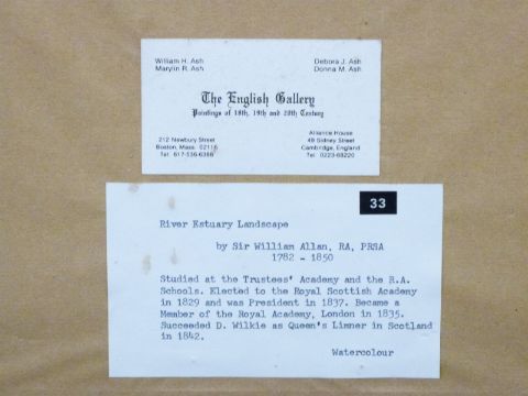 Attributed to Sir William Allan RA (1782-1850): Watercolour 'River Estuary landscape', framed with label verso