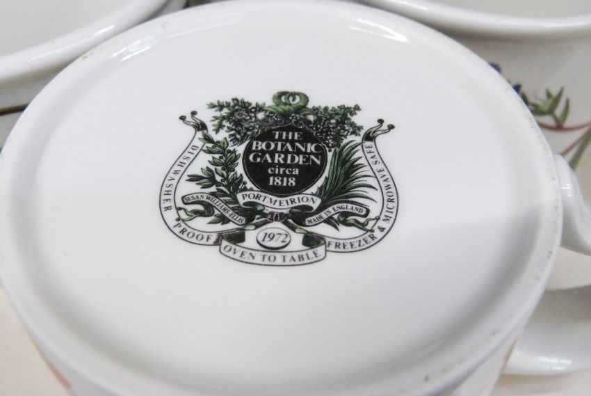 A collection of Portmeirion Botanic Garden dinner and tableware including butter dish, clock and trays etc