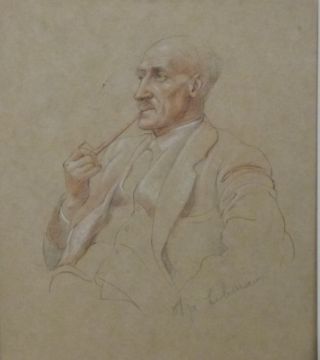 Olga Lehmann (1912-2001): Pencil and pastel drawing of a man smoking a pipe, 27cm x 23cm