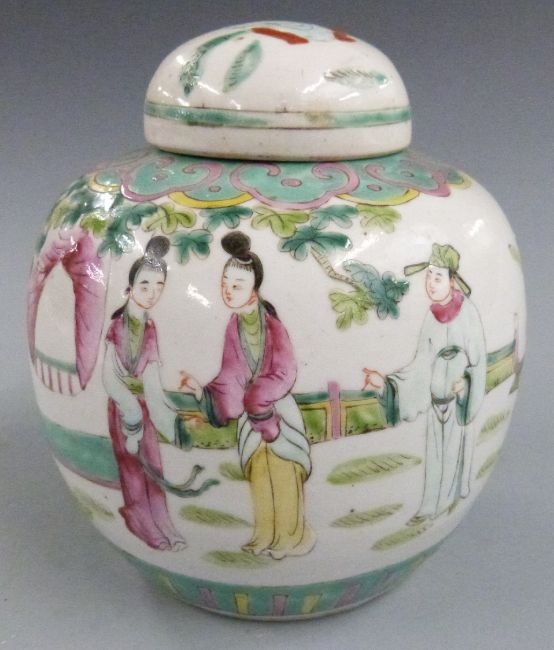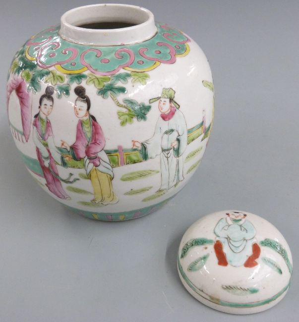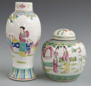 A 19thC/20thC Chinese vase and covered ginger jar with marks to base, largest 22cm