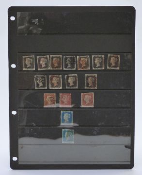 A good set of eleven Great Britain 1840 1d black stamps, plates 1a-10 with plate numbers marked lightly in pencil to verso, all clear four margin examples. Also 1840 2d blue BJ four margins with light red Maltese cross cancellation
