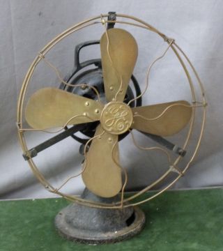 General Electric vintage cast iron and brass bladed fan, H 35cm