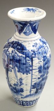 Delft covered vases, Japanese lobed vase, German Mettlach style pieces and an Art Deco wall pocket, tallest 44cm