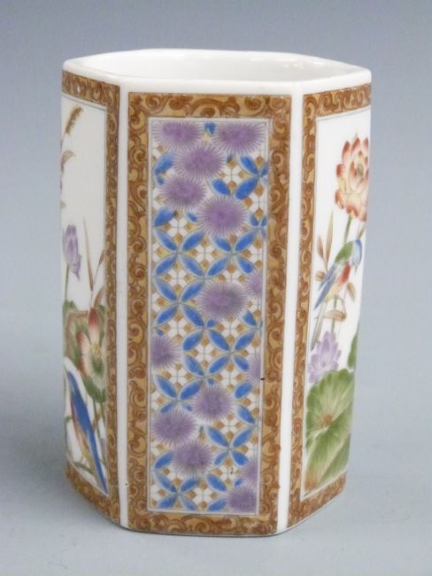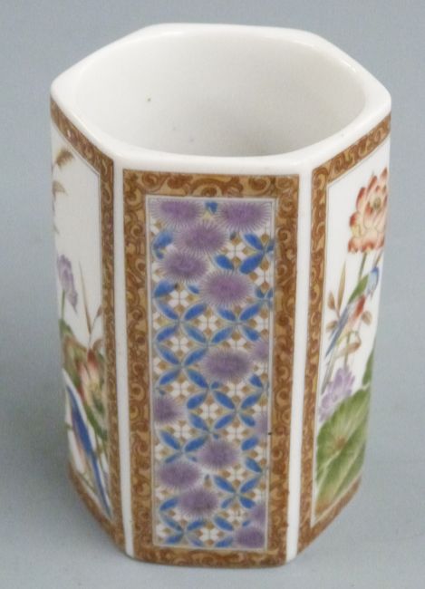 Japanese octagonal vase decorated with bird mark to base, 9cm tall