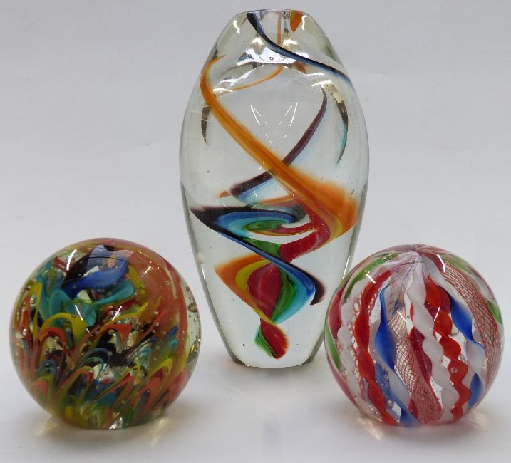 Eleven pieces of Scandinavian and similar studio glass including twist paperweights and vase etc, largest piece 21cm tall