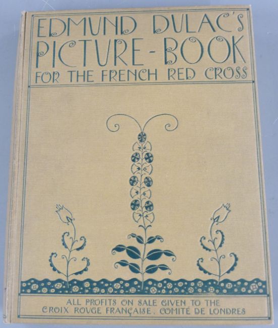 Edmund Dulac’s Picture-Book for The French Red Cross published Hodder & Stoughton (c1915) with mounted colour plates and decorated title page bound in publisher's decorated cloth with printed slip concerning the exhibition of Dulac’s original drawings (loosely inserted); Rubaiyat of Omar Khayyam with colour plates and decorations published A & C Black 1909 in decorated cloth and King Albert’s Book (1914) with colour plates by Maxfield Parrish, Kay Nielson, Rackham, Dulac etc (3)