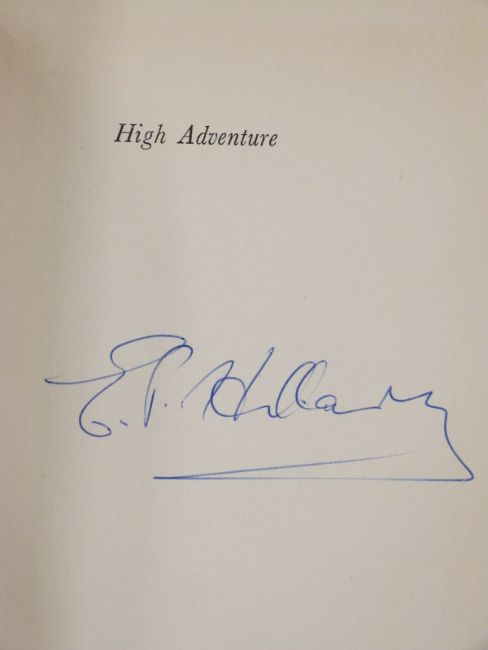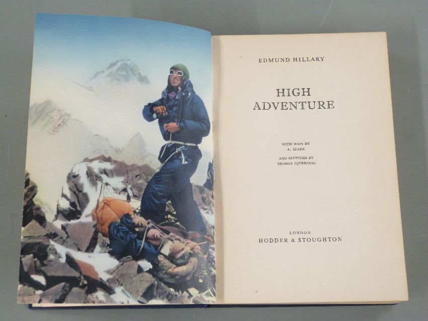 [Signed] Edmund Hillary High Adventure with Maps by A. Spark and Sketches by George Djurkouic, published Hodder & Stoughton 1955 first edition in publishers cloth, signed by Edmund Hillary on half-title page