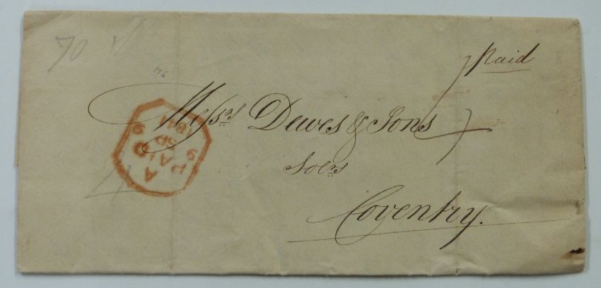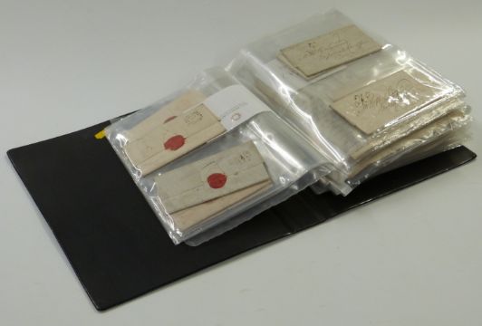 An extensive collection of mainly pre1840 entire letters in a ring binder. Includes examples from Charing Cross, Lombard Street & Vere Street London Post Offices, Scottish Additional Halfpenny Mail Tax, PAID stamps (tombstone, red circular and '1' in orange/red marks), too late and late fee postmarks, two Dublin and other interesting town and date marks (97)