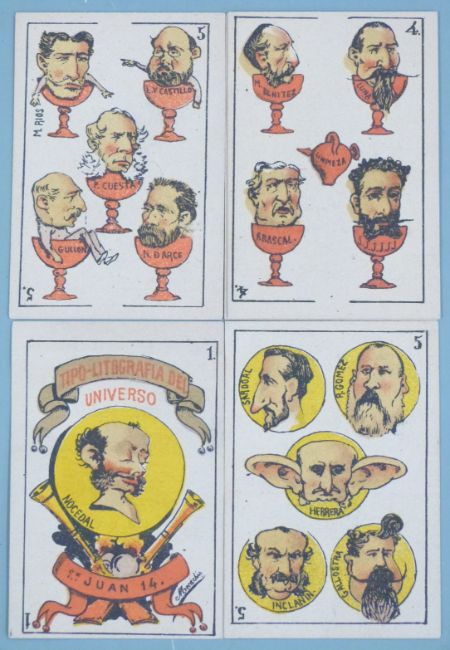 Mecachis 19th century Spanish political caricature pack of playing cards, circa 1875