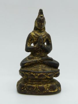 Eastern bronze statue of Guanyin with gilt detail, 7.8cm